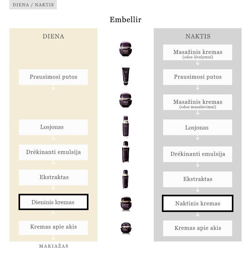 Naudojimas: panaudojus losjoną-emulsiją bei serumą, paimti reikiamą kiekį produkto (apytiksliai žirnio dydžio) ir paskleisti po visą veidą, kaklą ir dekoltė. Būtina tepti ir apie akis!