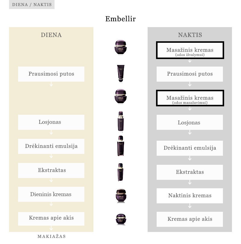 Naudojimas: raudonosios pupelės dydžio kremo kiekį paskleisti po visą veido, kaklo ir dekoltė zoną. Masažuoti, kol produkto kreminė tekstūra virs skaidria aliejine. Priemonę kruopšciai nuplauti drungnu vandeniu. Naudoti tik vakare.