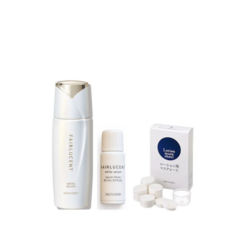 Fairlucent White Serum – šviesinantis serumas / 100ml Papildoma dovana: White Serum MINI – šviesinantis serumas / 5ml / 10vnt. Mask Sheet for Lotion – presuota kaukė / 28vnt.
