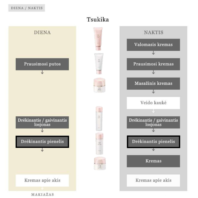 Naudojimas: nedidelį kiekį emulsijos paskirstyti ant veido ir dekoltė odos ir švelniai įtapšnoti pirštų pagalba, iš apačios į viršų. Rekomenduojama naudoti nuprausus veidą, po tonizuojančio losjono, ryte ir vakare. Galima naudoti ir odai apie akis. Nenuplauti.